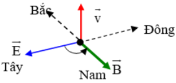 Tại Vinh, một máy đang phát sóng điện từ. Xét một phương truyền có phương thẳng đứng hướng lên. Vào thời điểm t, tại điểm M trên phương truyền, vectơ cảm ứng từ đang có độ lớn cực đại và hướng về phía Nam. Khi đó, vectơ cường độ điện trường có: