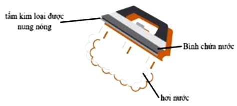 Hình bên mô tả một chiếc bàn là hơi nước. Nước từ một bình chứa nhỏ giọt vào một tấm