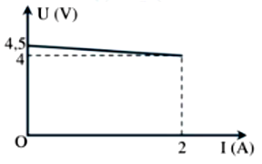 Người ta mắc hai cực nguồn điện không đổi với một biến trở. Điều chỉnh biến trở, đo hiệu điện thế U giữa hai cực của nguồn và dòng điện I chạy qua mạch ta vẽ lược đồ thị như hình vẽ. Xác định suất điện động và điện trở trong của nguồn?