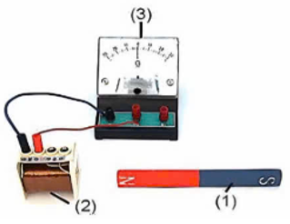 Sử dụng các dụng cụ thí nghiệm: Nam châm (1), cuộn dây (2), điện kế (3)