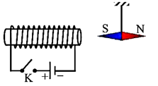 Cho một ống dây đặt cố định và một nam châm thử được treo như hình bên. Khi dòng điện