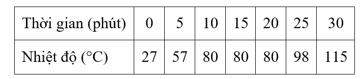 Một học sinh thực hiện thí nghiệm nung nóng chảy một mẫu chất rắn kết tinh. Bảng bên dưới