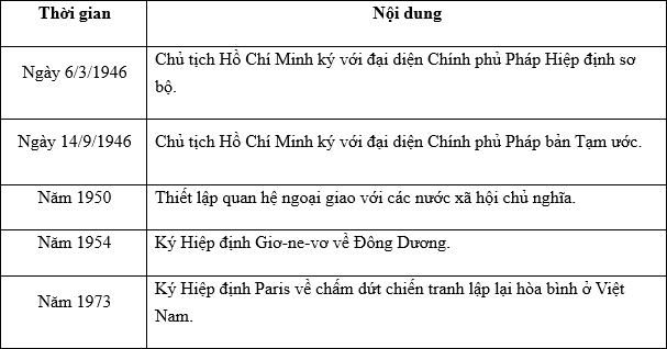 | b) Những văn kiện ngoại giao được ký trên tư liệu đã thể hiện quá trình giành thắng lợi từng bước của Việt Nam. | ||