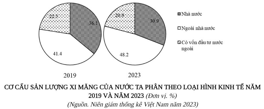 Dựa vào tỉ trọng khu vực Nhà nước, ngoài Nhà nước, khu vực có vốn đầu tư nước ngoài năm 2019, năm 2023 và so sánh.