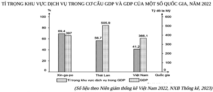 | c) Tỉ trọng khu vực dịch vụ trong GDP Xin-ga-po cao gấp hai lần Việt Nam. | ||