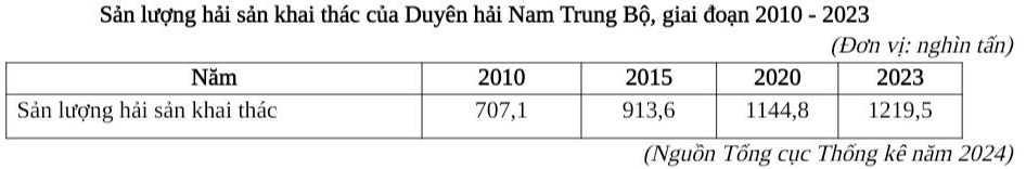Cho bảng số liệu: Dựa vào biểu đồ, cho biết sản lượng hải sản khai thác của Duyên hải