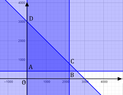 Một nhà đầu tư có số vốn là 3 tỷ đồng (3000 triệu đồng) và dự định phân bổ vào quỹ cổ phiếu A và quỹ trái phiếu B. Các thông tin và điều kiện đầu tư như sau: Quỹ cổ phiếu A có tỷ suất sinh lời là $15%$ /năm. Quỹ trái phiếu B có tỷ suất sinh lời là $7%$ /năm. Tổng số tiền đầu tư không vượt quá 3000 triệu đồng. Phải đầu tư ít nhất 400 triệu đồng vào quỹ trái phiếu B. Không đầu tư quá 2200 triệu đồng vào quỹ cổ phiếu A. Với các điều kiện trên thì nhà đầu tư có thể đạt được tổng lợi nhuận hàng năm lớn nhất là bao nhiêu triệu đồng (làm tròn đến hàng đơn vị)?