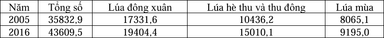 SẢN LƯỢNG LÚA CỦA NƯỚC TA, NĂM 2005 VÀ NĂM 2016