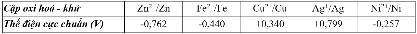 Cho bảng giá trị thế điện cực chuẩn của các cặp oxi hoá – khử như sau: