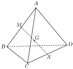 Cho tứ diện ABCD, hai điểm M, N theo thứ tự là trung điểm của AB, CD. Điểm G trung điểm đoạn