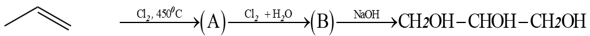 Glycerol được tổng hợp từ propylene theo sơ đồ sau:Biết chất (A) là dẫn xuất halogen từ phản
