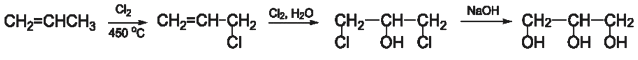 Glycerol được tổng hợp từ propylene theo sơ đồ sau: