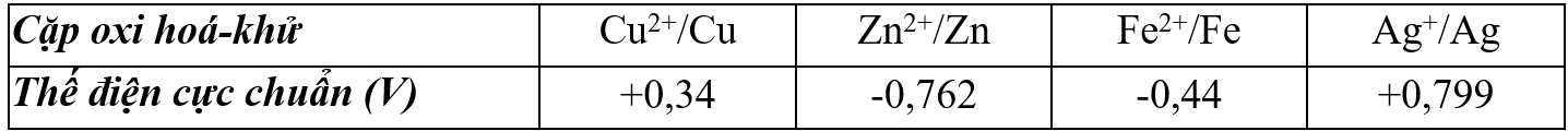 Cho các cặp oxi hoá - khử và thế điện cực chuẩn tương ứng: