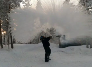 Đầu năm 2024, các quốc gia Bắc Âu đã chứng kiến thời tiết cực lạnh, với nhiệt độ thấp nhất trong 25 năm ở mức – 44,30C, người dân đã đun sôi nước, nhanh chóng mang ra ngoài và hất tung nó theo hình vòng cung trên không trung, ngay lập tức biến thành một đám mây băng giá. Đây là hiện tượng