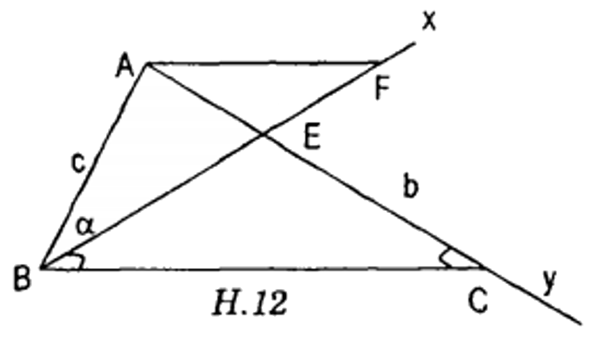 Dựng góc $\angle CBx$ bằng góc $C$ thì có $\angle ABx = \angle B - \angle C = \alpha$, rồi trên tia $Bx$ lấy $BF = AC = b$