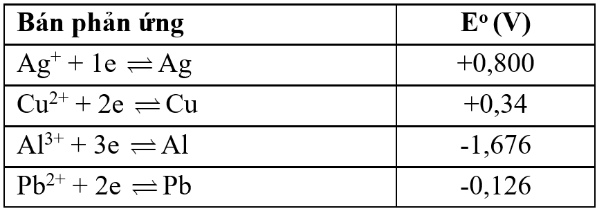 Cho bán phản ứng và giá trị thế điện cực chuẩn như sau: