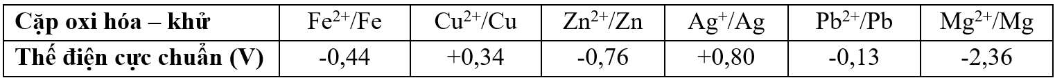 Cho bảng giá trị thế điện cực chuẩn của các cặp oxi hóa – khử như sau: