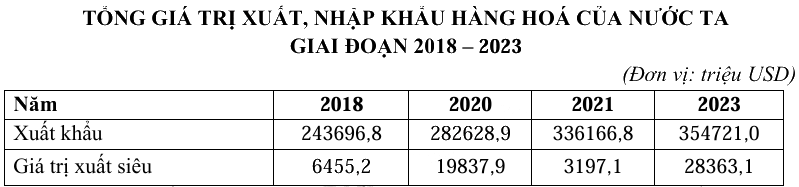 Cho bảng số liệu: Căn cứ vào bảng số liệu trên, hãy cho biết trong giai đoạn 2018 - 2023, tỉ