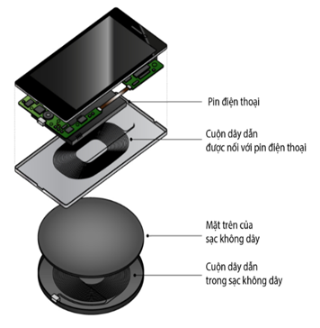 Sạc điện không dây ngày càng được sử dụng rộng rãi để sạc điện thoại, đồng hồ thông minh, máy hút bụi,… Sạc điện không dây đã truyền điện từ nguồn điện đến điện thoại và đưa vào pin (xem hình).