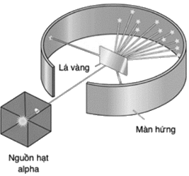 Năm 1911, Rutherford thực hiện thí nghiệm tán xạ alpha ($\alpha$) trên lá vàng rất mỏng có sơ đồ