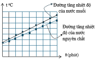 Trong thực tế, khi đun nước nếu bỏ thêm một ít muối vào nước thì nước nóng nhanh hơn (I).