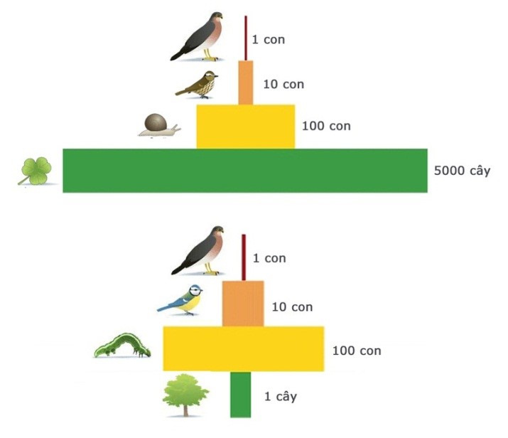 - Tháp số lượng được xây dựng dựa trên số lượng cá thể sinh vật ở mỗi bậc dinh dưỡng.