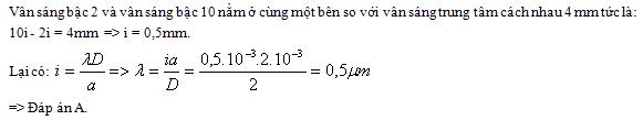 Trong thí nghiệm Young về giao thoa ánh sáng: biết khoảng cách giữa hai khe hẹp là 2 mm, khoảng cách từ hai khe đến màn hứng vân là 2 m, vân sáng bậc 2 và vân sáng bậc 10 nằm ở cùng một bên so với vân sáng trung tâm cách nhau 4 mm. Ánh sáng đơn sắc sử dụng có bước sóng là