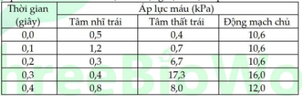 Bảng dưới đây ghi lại áp lực máu trong tâm nhĩ trái, tâm thất trái và động mạch chủ tại
