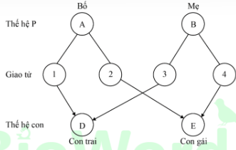 Sơ đồ bên mô tả 4 thành viên trong 1 gia đình gồm có bố (A), mẹ (B), con trai (D) và con gái (E).