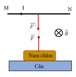 | a) Lực tác dụng làm cho số chỉ của cân giảm là lực từ tác dụng lên đoạn dây và có chiều hướng lên. | ||