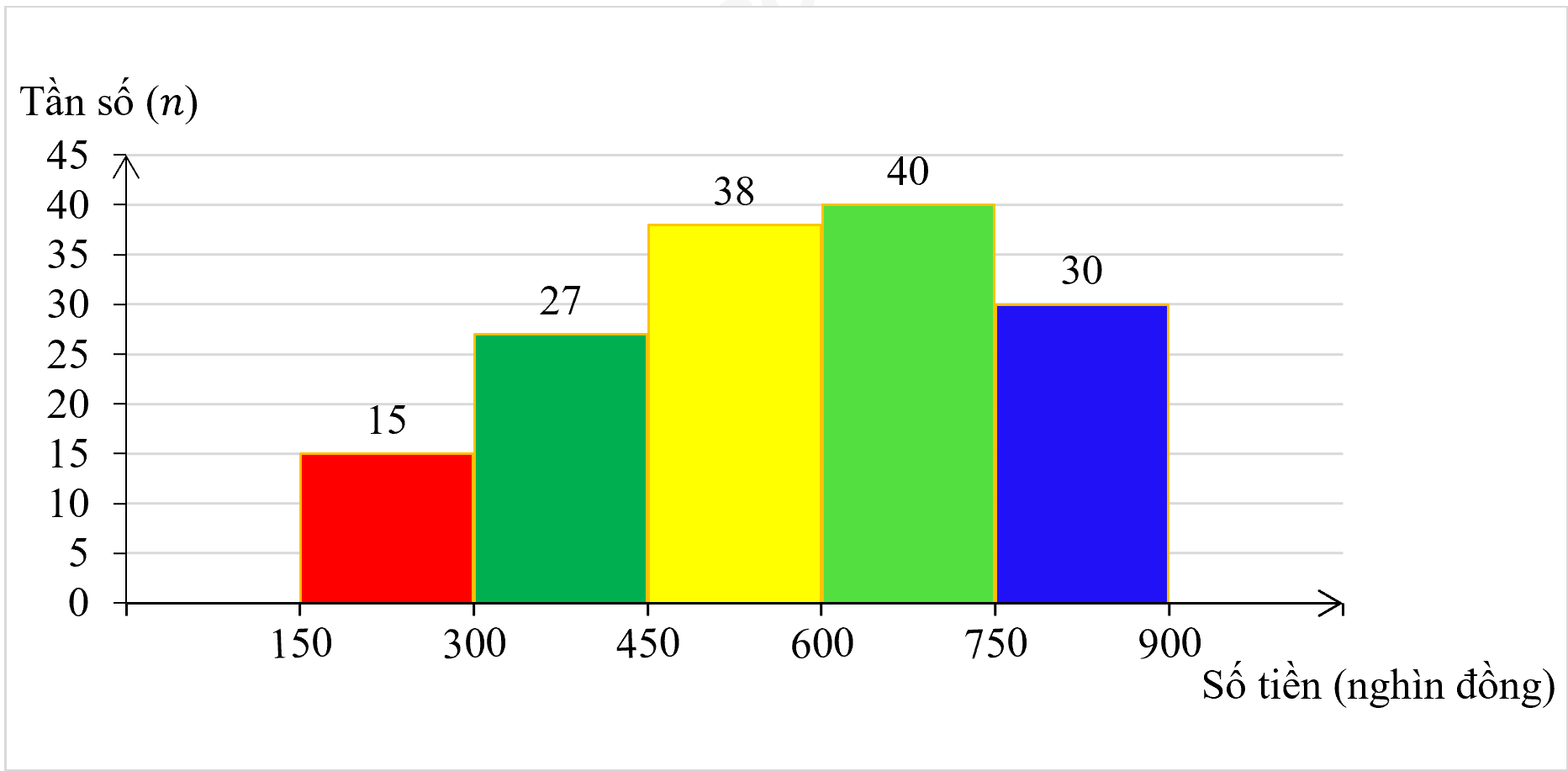 Một siêu thị thống kê hóa đơn mua hàng (đơn vị: nghìn đồng) của $150$ khách hàng đầu tiên trong ngày. Số liệu được ghi lại trong biểu đồ tần số ghép nhóm sau:
