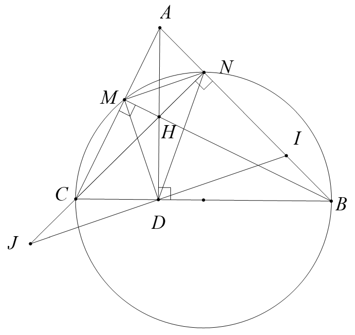 Suy ra $\widehat{HDM} = \widehat{HDN}$. Từ đó kết luận $AD$ là phân giác của góc $\widehat{MDN}$(đpcm).