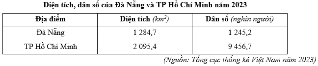 Căn cứ vào bảng số liệu trên, hãy cho biết năm 2023, mật độ dân số của TP Hồ Chí Minh gấp mấy lần Đà Nẵng? (làm tròn kết quả đến một chữ số thập phân).