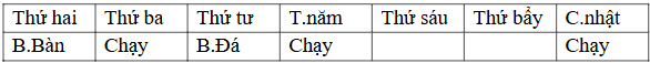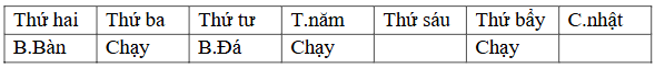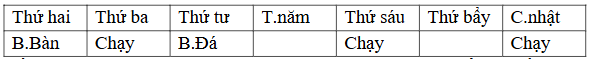 Trong tuần, mỗi ngày bạn Nam chơi một môn thể thao. Nam chạy 3 ngày một tuần nhưng không bao