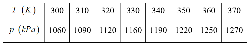 Một nhóm học sinh làm thí nghiệm gồm các dụng cụ như hình bên để khảo sát sự phụ thuộc của áp suất p của một lượng khí (được chứa nhờ áp kế) theo nhiệt độ tuyệt đối T (được đo nhờ nhiệt kế điện tử) của nó ở một thể tích không đổi, thu được kết quả như ở bảng sau đây: