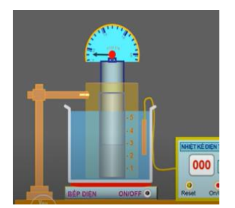 | a) Các thao tác thí nghiệm: Cố định pít-tông, bật bếp điện để đun nóng nước, khuấy đều nước, đọc số chỉ của áp kế và nhiệt độ tương ứng ở các thời điểm, ghi vào bảng số liệu. | ||