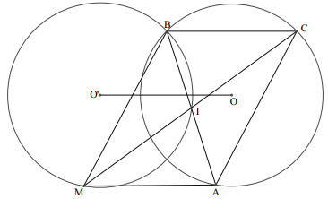 Cho đường tròn $\left( {O;R} \right)$ cố định. Lấy $B,\,\, C$ là hai điểm cố định trên đường tròn và $A$ là một điểm tùy ý trên đường tròn. Gọi $M$ là điểm đối xứng của điểm $C$ qua trung điểm $I$ của $AB$. Tìm quỹ tích các điểm $M$