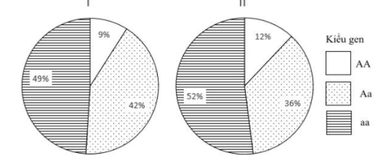 | a) Tần số tương đối của allele A quần thể I lớn hơn quần thể II, tần số tương đối của allele a quần thể II lớn hơn quần thể I. | ||