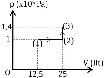 Một khối khí lí tưởng biến đổi trạng thái như đồ thị dưới đây. Ở trạng thái (1),