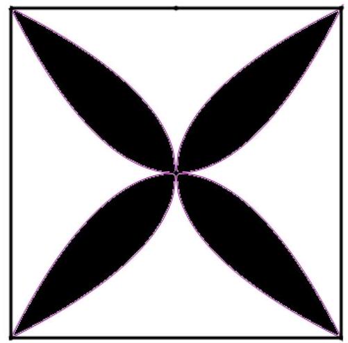 Một viên gạch hình vuông cạnh 4 dm. Người thiết kế sử dụng bốn đường parabol chung đỉnh tại tâm viên gạch để tạo ra bốn cánh hoa (được tô màu đen) như hình vẽ.