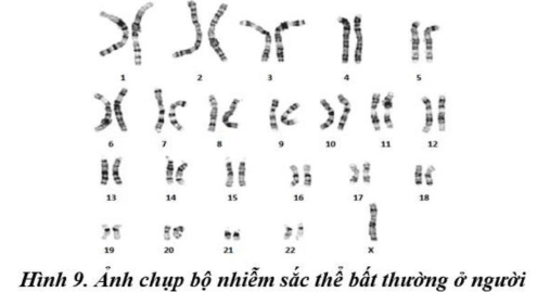 Quan sát Hình 9, hãy cho biết người có bộ NST bất thường này mắc hội chứng gì?