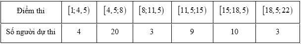 Cho mẫu số liệu ghép nhóm về điểm thi và số người dự thi như sau: