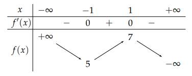 | a) Hàm số có giá trị cực đại là 7, giá trị cực tiểu là 5. | ||
