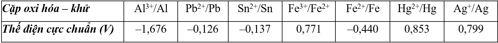 Cho thế điện cực chuẩn của các cặp oxi hoá - khử như bảng sau: