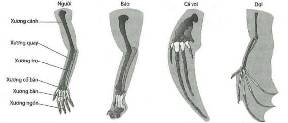 Cấu trúc và hình thái của chi trước ở một số loài thú được mô tả ở hình bên. Phát biểu nào sau đây phù hợp nhất với hình?