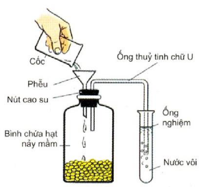 Để tìm hiểu quá trình hô hấp và thực vật, một nhóm học sinh đã bố trí thí nghiệm như hình bên. Nước vôi được sử dụng trong thí nghiệm này nhằm mục đích nào sau đây?