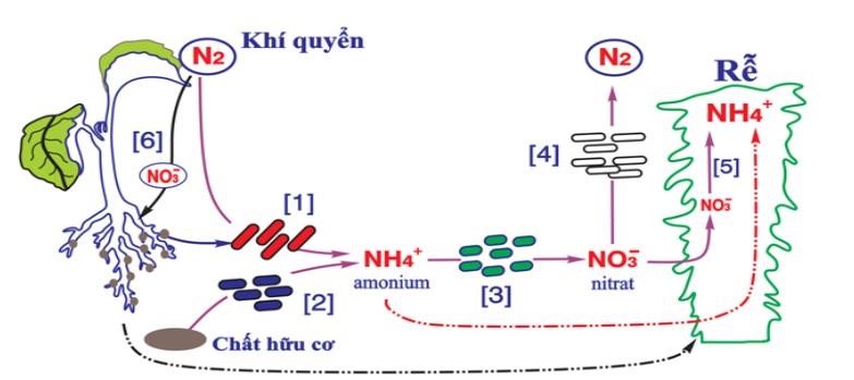 Trong đất: Nitrogen hữu cơ được khoáng hóa thành: NH4+ và NO3-