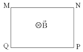 Một khung dây dẫn MNPQ đặt cố định trong từ trường đều có cảm ứng từ vuông góc với mặt phẳng khung dây như hình bên. Khi độ lớn của cảm ứng từ $\overset{\rightarrow}{B}$ tăng đều theo thời gian thì trong khung