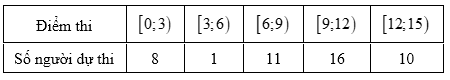 Cho mẫu số liệu ghép nhóm về diểm thi và số người dự thi như sau: