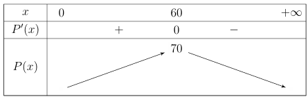 Giả sử một loại hàng hoá có hàm cầu được mô hình hoá bởi $p(x) = 100 - 0,5x$ và hàm chi phí được mô hình hoá bởi $C(x) = 40x + 37,5$, trong đó $p$ (nghìn đồng) là giá của một đơn vị hàng hoá đó. Hỏi khi lợi nhuận là lớn nhất, chi phí trung bình cho mỗi đơn vị là bao nhiêu nghìn đồng? (kết quả làm tròn dến hàng đơn vị).